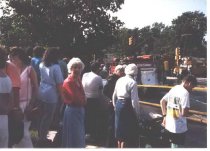People observing damage caused by the microburst in spring of 1989.- Lucilla Crocker facing camera in foreground.