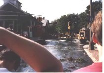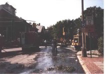 Debris and scene of fatal accident at the corner of Prospect Street and Main Street after the microburst of 1989.